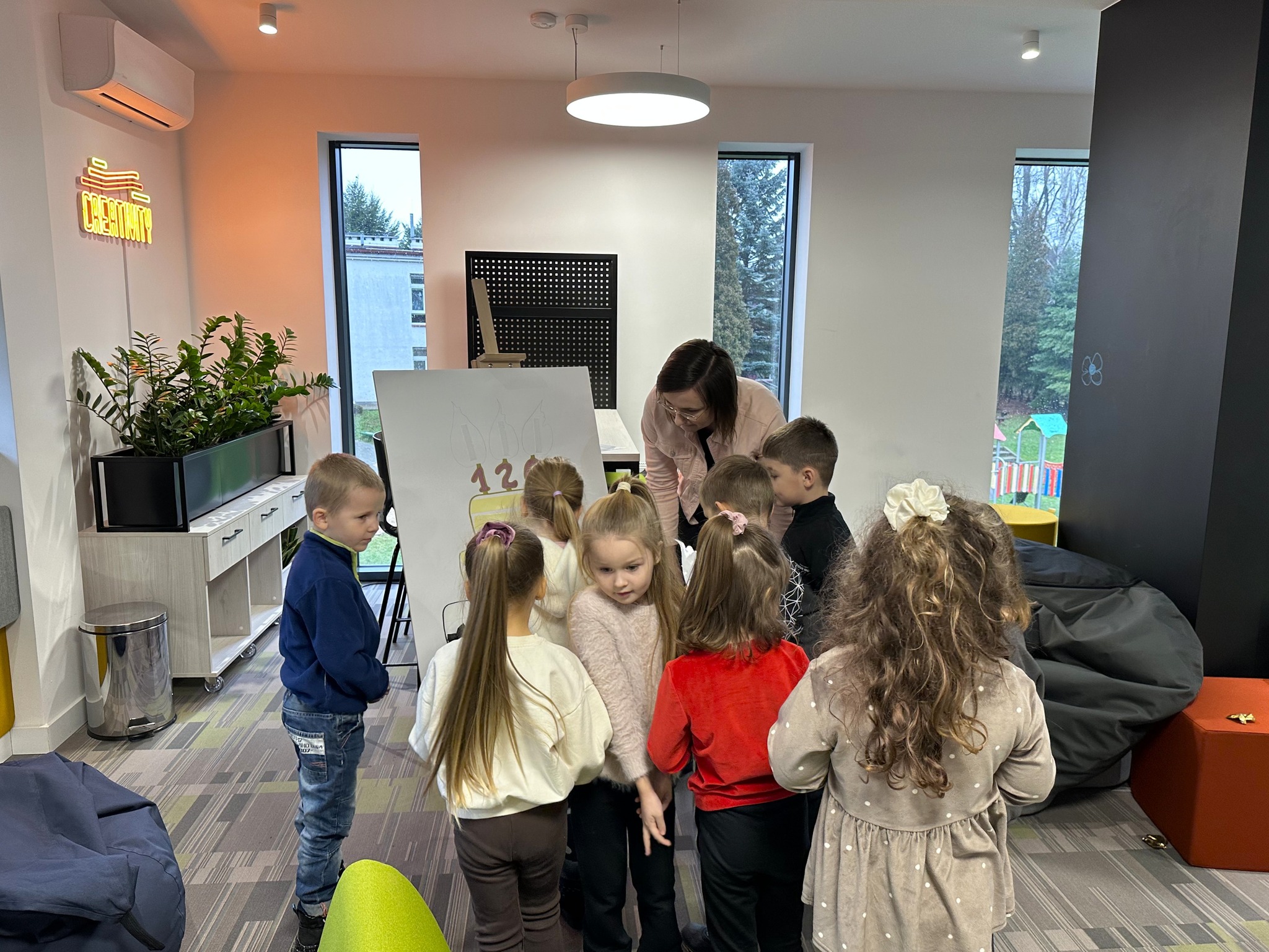 Przewodniczka muzealna przedstawiła przedszkolakom Wielki Piec oraz wspierała młodych odkrywców w ich zadaniach, towarzyszyła im w odkrywaniu tajemnic jednego z najważniejszych zabytków techniki w regionie.